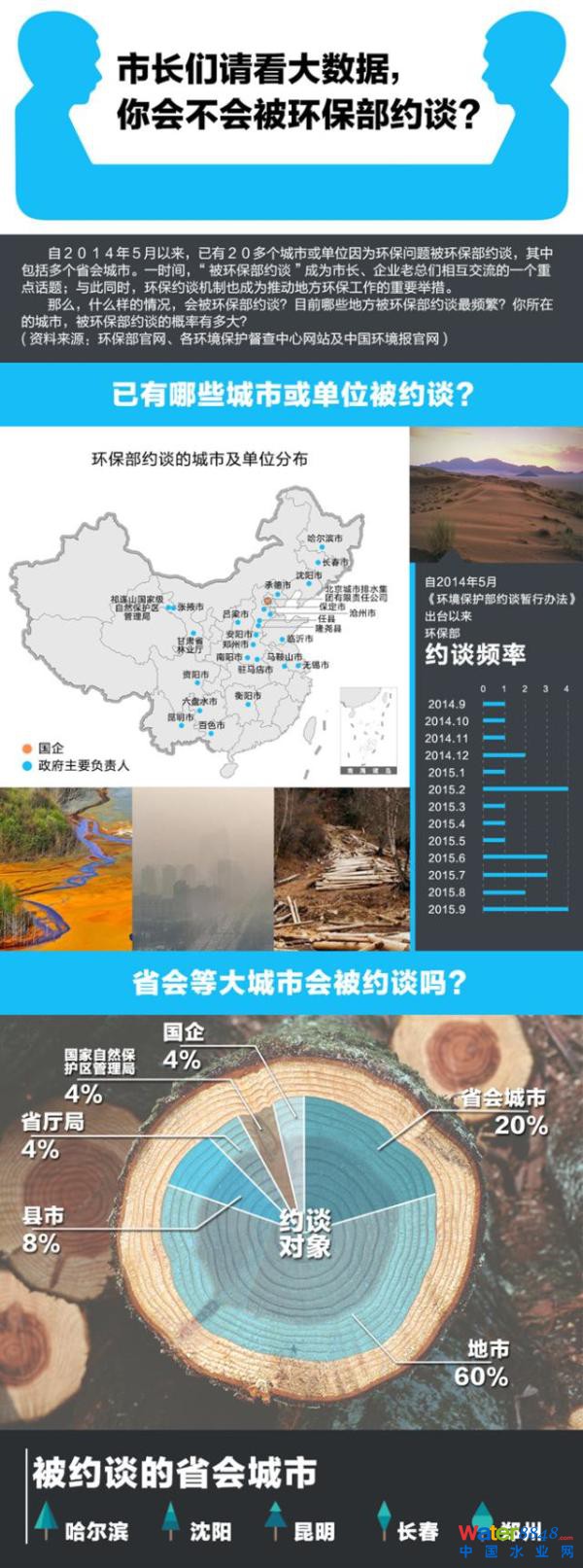那么,什么樣的情況,會(huì)被環(huán)保部約談?目前哪些地方被環(huán)保部約談最頻繁?你所在的城市或單位,被環(huán)保部約談的概率有多大?新華社“中國網(wǎng)事”記者對(duì)已經(jīng)被環(huán)保部約談的城市和單位進(jìn)行了大數(shù)據(jù)梳理,或許可以給市長、企業(yè)老總們一些借鑒。