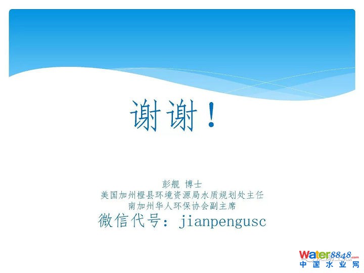(以上是美國加州橙縣流域管理局水質(zhì)規(guī)劃處主任彭艦博士在2017洛杉磯環(huán)境論壇合肥分論壇演講的全文。有任何問題需要交流,可關(guān)注微信公眾號“泛湖生態(tài)”聯(lián)系交流)
