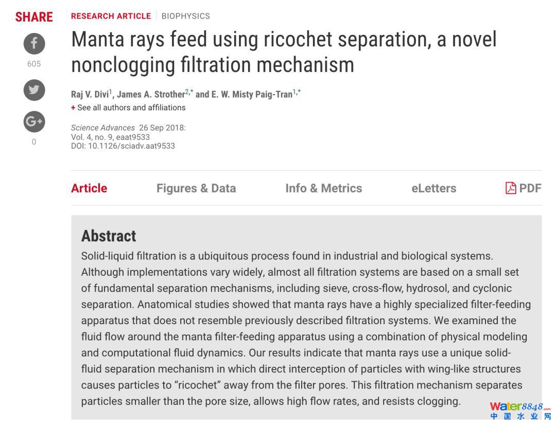 小編今天之所以要談蝠鲼,是因?yàn)?span style="font-weight: 700; border: 0px; margin: 0px; padding: 0px;">它也許能解決水處理界的過濾技術(shù)的老大難問題——濾孔堵塞。