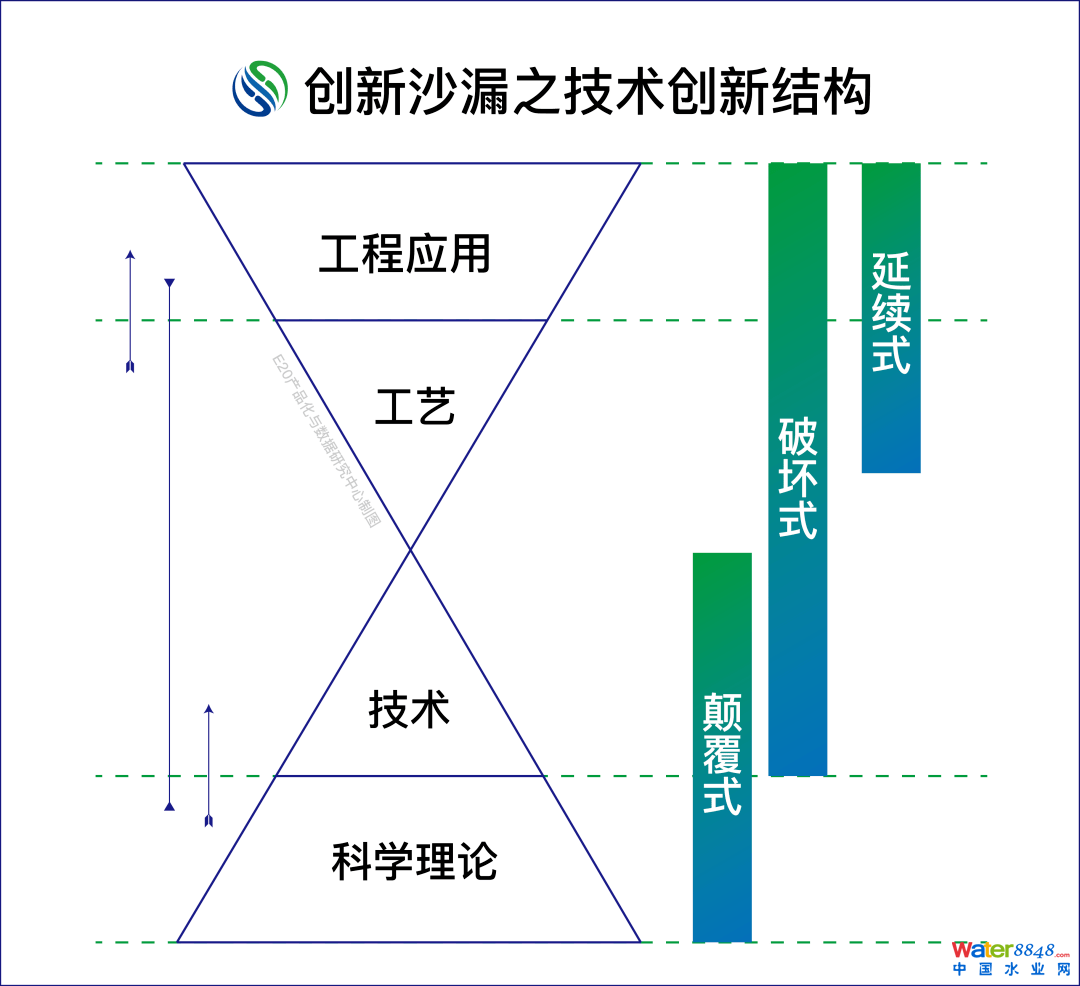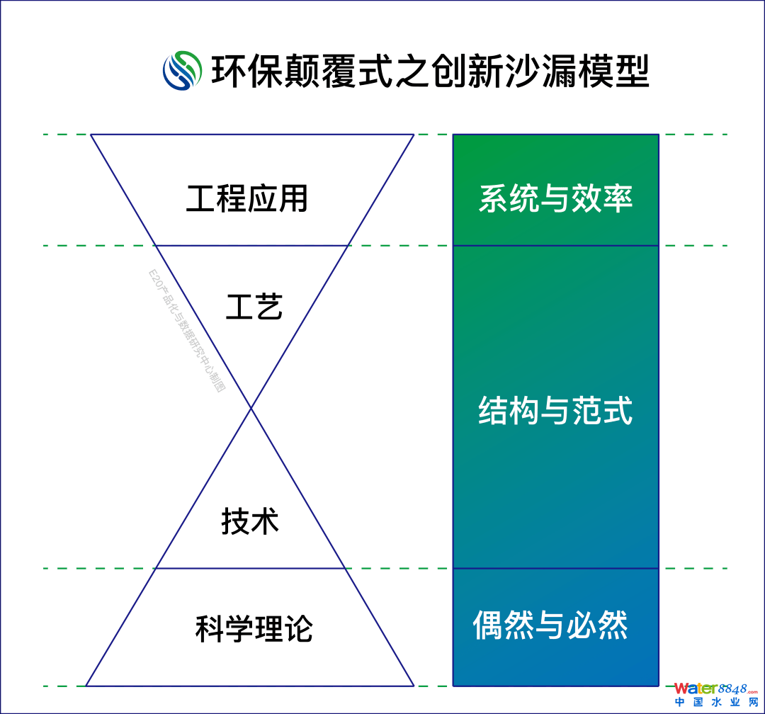 在中國(guó)環(huán)保系統(tǒng)內(nèi),“科學(xué)理論層”通常由科研院校獨(dú)立負(fù)責(zé),企業(yè)的領(lǐng)域多在工藝技術(shù)層和工程應(yīng)用層。二者間的配合并不理想,呈現(xiàn)為:一邊研學(xué)無(wú)用、一邊創(chuàng)新無(wú)門(mén)。其實(shí)質(zhì)一方面是普遍忽視了“工藝技術(shù)”的結(jié)構(gòu)化視野,要么偏上、要么傾下,短了其系統(tǒng)性連接的作用;二則創(chuàng)新系統(tǒng)、創(chuàng)新平臺(tái)的稀缺導(dǎo)致三層結(jié)構(gòu)的整合未成顯效,常常失落在“偶然到必然”的途中。