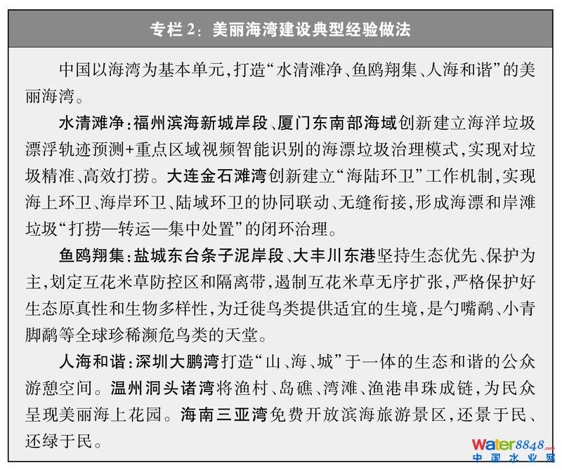 多措并舉建設(shè)美麗海灣。制定美麗海灣建設(shè)的基本標(biāo)準(zhǔn),以海灣環(huán)境質(zhì)量良好、海洋生態(tài)系統(tǒng)健康、人海關(guān)系和諧共生為導(dǎo)向,設(shè)置五類指標(biāo),指導(dǎo)各地開(kāi)展美麗海灣建設(shè),鼓勵(lì)因地制宜增設(shè)特色指標(biāo)。建立美麗海灣建設(shè)管理平臺(tái),利用現(xiàn)場(chǎng)調(diào)查和遙感監(jiān)測(cè)等手段,跟蹤評(píng)估進(jìn)展,推動(dòng)實(shí)現(xiàn)美麗海灣建設(shè)情況智慧監(jiān)管,督促推動(dòng)各級(jí)政府因地制宜開(kāi)展海灣綜合治理,落實(shí)建設(shè)任務(wù)。建立多元投融資機(jī)制,強(qiáng)化政府引導(dǎo),鼓勵(lì)經(jīng)營(yíng)主體、社會(huì)資本參與美麗海灣建設(shè)。綜合運(yùn)用財(cái)政投入、專項(xiàng)債、生態(tài)環(huán)境導(dǎo)向開(kāi)發(fā)(EOD)項(xiàng)目等財(cái)政金融手段,加快推進(jìn)美麗海灣建設(shè)項(xiàng)目落地。加強(qiáng)美麗海灣建設(shè)示范引領(lǐng),鼓勵(lì)美麗海灣建設(shè)制度機(jī)制和關(guān)鍵技術(shù)創(chuàng)新,開(kāi)展優(yōu)秀案例遴選,推廣示范經(jīng)驗(yàn)?zāi)J,引領(lǐng)提升美麗海灣建設(shè)總體水平。目前,已遴選兩批20個(gè)國(guó)家級(jí)美麗海灣優(yōu)秀案例。