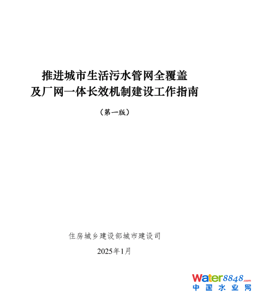 建司局函城[2025]03號 住房城鄉(xiāng)建設(shè)部城市建設(shè)司關(guān)于印發(fā)《推進城市生活污水管網(wǎng)全覆蓋及廠網(wǎng)一體長效機制建設(shè)工作指南(第一版)》的通知 各省、自治區(qū)住房城鄉(xiāng)建設(shè)廳,北京、天津、上海市水務(wù)局,重慶市