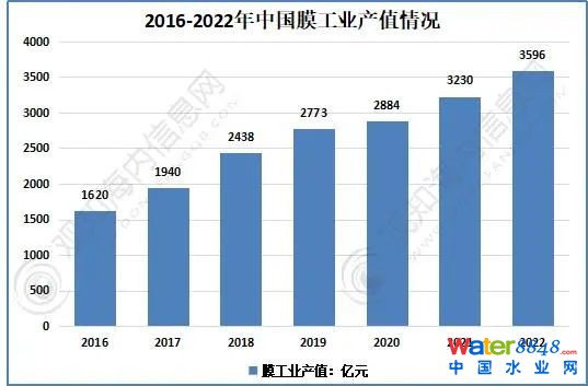 2016-2022年中國(guó)膜工業(yè)產(chǎn)值情況