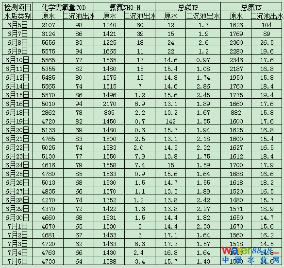 1)高濃度的COD、氨氮、總磷、總氮,屬于典型的難處理高濃度廢水;